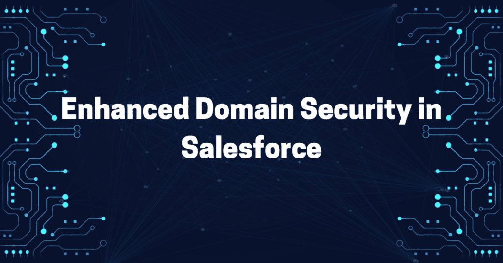 Enhanced domains are the latest version of My Domain that meets the latest browser requirements. With enhanced domains, all URLs across your org contain your company-specific My Domain name, including URLs for your Experience Cloud sites, Salesforce Sites, Visualforce pages, and content files.