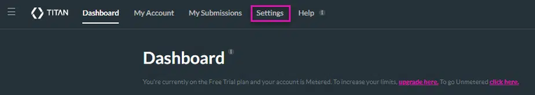 1. Select the Settings tab found in the Titan Dashboard.